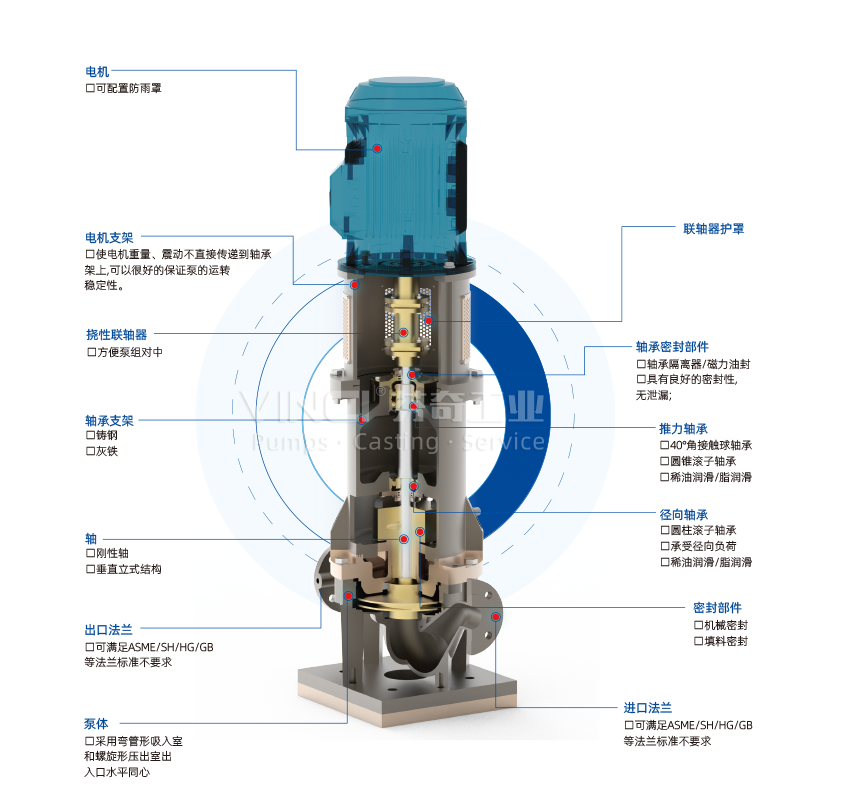 葉輪、泵體及泵蓋帶有可更換的密封環(huán),維修方便,節(jié)約備件費用。