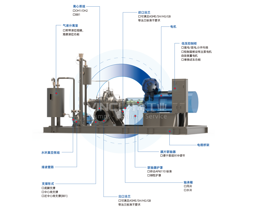 5、離心泵多樣化,根據(jù)流量需求,可配置OH1、OH2或者BB1等泵型。