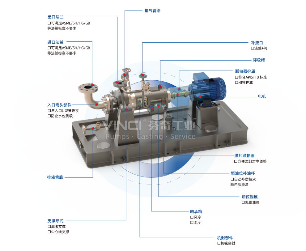 VOH系列泵是典型的臥式單級(jí)、懸臂、徑向剖分、蝸殼式流程泵,自排氣,可配集裝機(jī)械密封或填料密封,滿足API610第12版的技術(shù)要求。